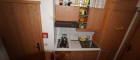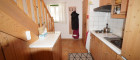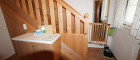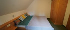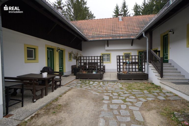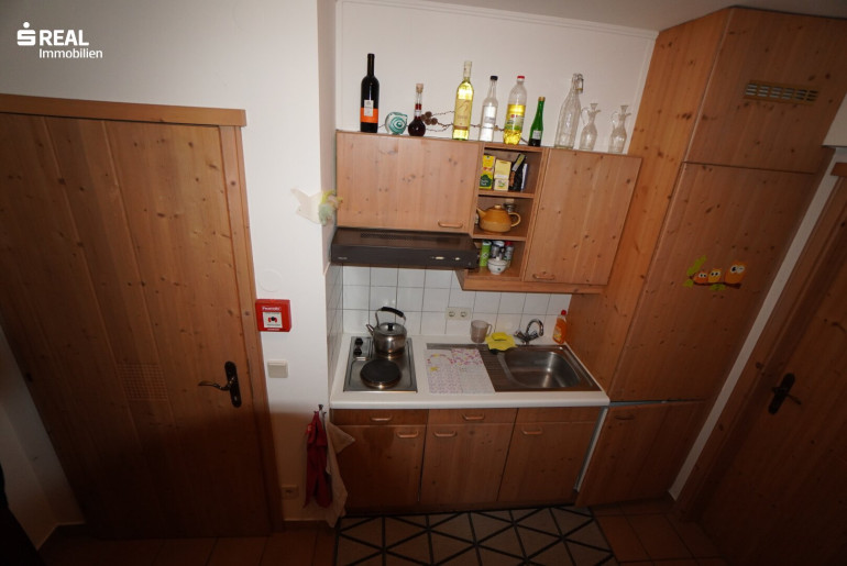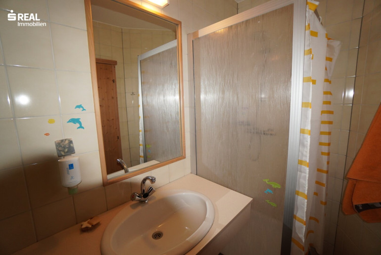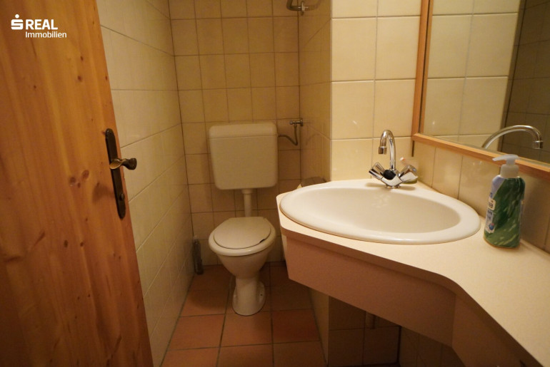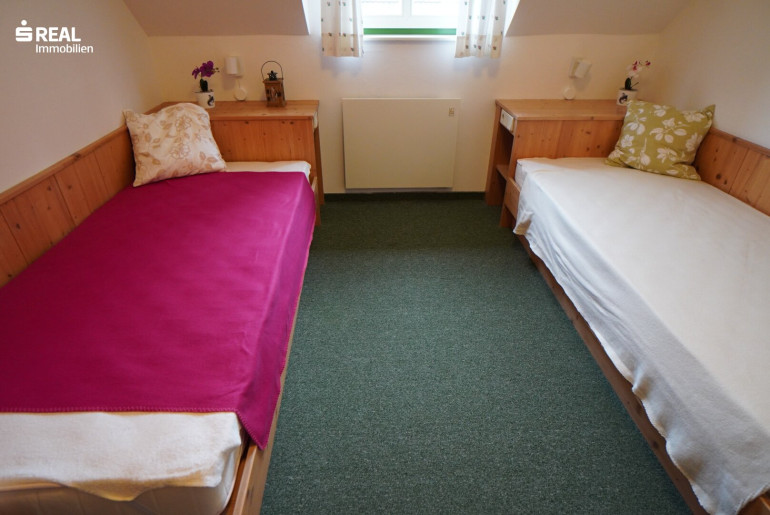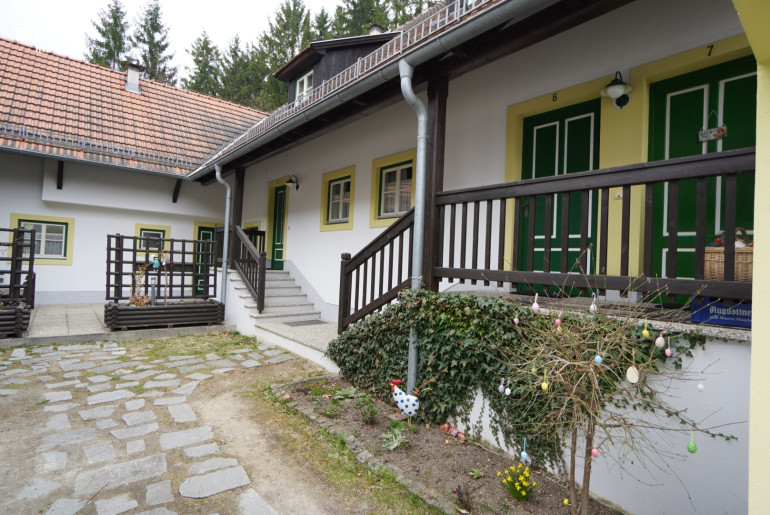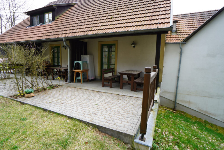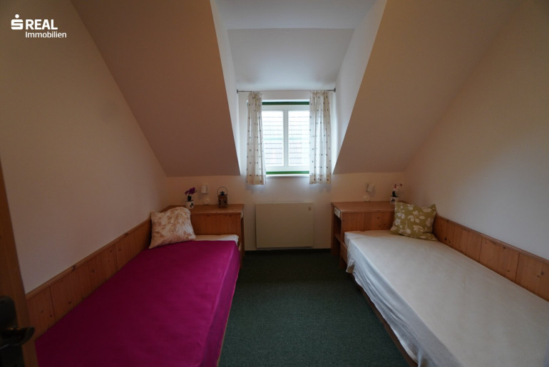Die Wohnung ist komplett im Landhausstil (Holz) möbliert. Die Nutzfläche beträgt rd. 58 m² und teilt sich in zwei Etagen auf. Im Erdgeschoß findet man den Windfang/Vorraum, ein WC mit Handwaschbecken, eine Küchenzeile mit Herd, Spülbecken und Kühlschrank, einer Treppennische und einem geräumigen Wohnzimmer mit Essecke, Sitzgarnitur und den Ausgang zur Terrasse in absoluter Ruhelage. Über eine Holztreppe gelangt man ins Dachgeschoß, wo man den Vorraum, zwei Zimmer und das Badezimmer mit WC und Dusche findet. Ein separates Kellerabteil steht ebenfalls zur Verfügung.