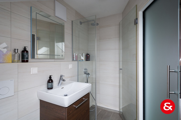 Das Badezimmer im OG ist ein wahres Highlight: ausgestattet mit Fenster, Badewanne und Dusche, bietet es Ihnen den idealen Rückzugsort für Entspannung und Erholung.