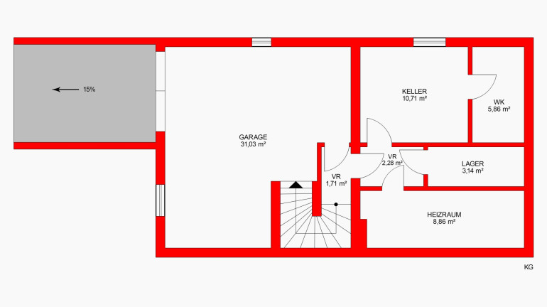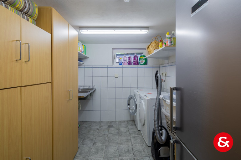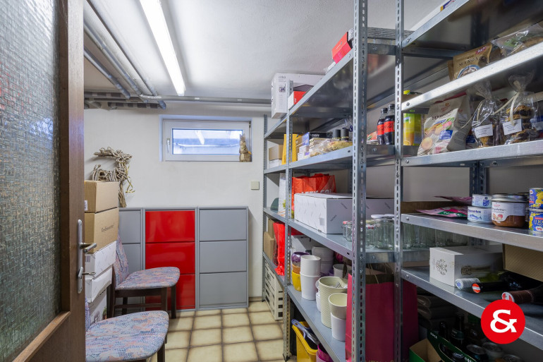 Im Kellergeschoss befinden sich der Technikraum, ein Wirtschaftsraum und zusätzliche Räume für Lagermöglichkeiten.