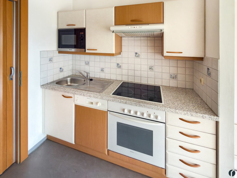 Diese gepflegte 2-Zimmer-Wohnung betritt man über den Vorraum von dem der Großteil der Räume zentral betreten werden können. Neben dem Eingang befindet sich gleich ein kleiner Abstellraum der über die Küche zugänglich ist. Der Küchenbereich selbst ist offen zum Wohnzimmer und verfügt über eine Einbauküche mit Herd, Kühlschrank und Mikrowelle. Das ca. 18 m² große Wohnzimmer selbst verfügt über einen Zugang zum überdachten Süd-Balkon als idealer Rückzugsort für entspannte Abende.