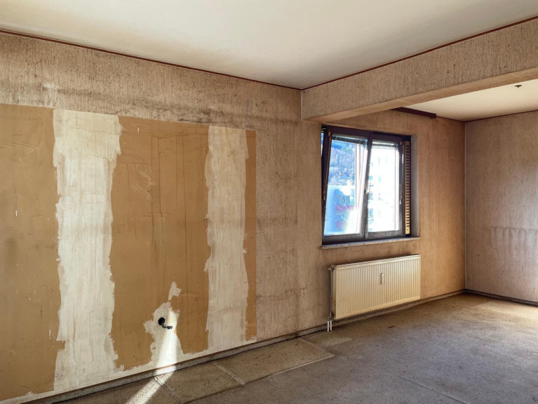 Aufteilung: 1 Flur, 1 großzügiger Wohn- Essbereich, 1 Küche, 1 Schlafzimmer, 1 Kinderzimmer, 1 Bad, 1 WC, 1 Abstellraum. Der Wohnung ist ein Kellerabteil zugeordnet. Die Wohnung muss saniert und "in Schuss gebracht" werden. Sie wird vollkommen geräumt übergeben.