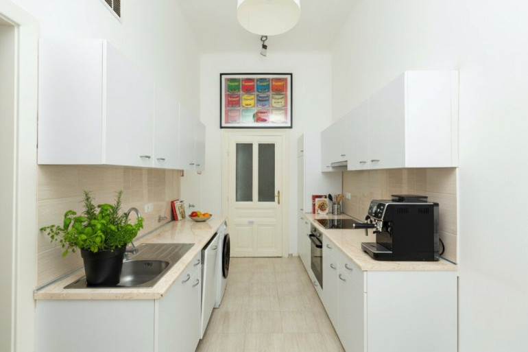- Einbauküche inkl. Cerankochfeld, Dunstabzug, Kühl-/Gefrierkombination, Backrohr & Geschirrspüler sowie Platz für einen kleinen Essbereich