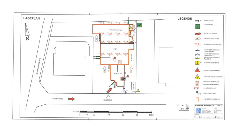 Brandmeldeanlage im Vollschutz (TRVB S 123), Brandrauchentlüftung, Blitzschutzanlage (ÖVE/ÖNORM), eigene Trafostation, Druckluftanlage (Kaeser). Das Objekt war zuvor als lebensmitteltaugliche Betriebsanlage genehmigt — die komplette Genehmigungshistorie ist dokumentiert. Für Nutzer mit Produktionshintergrund entfallen monatelange Genehmigungsverfahren.