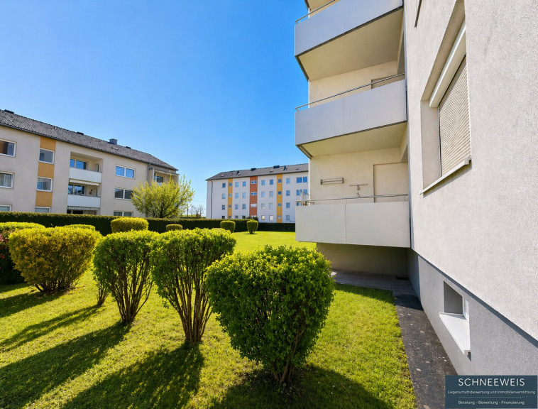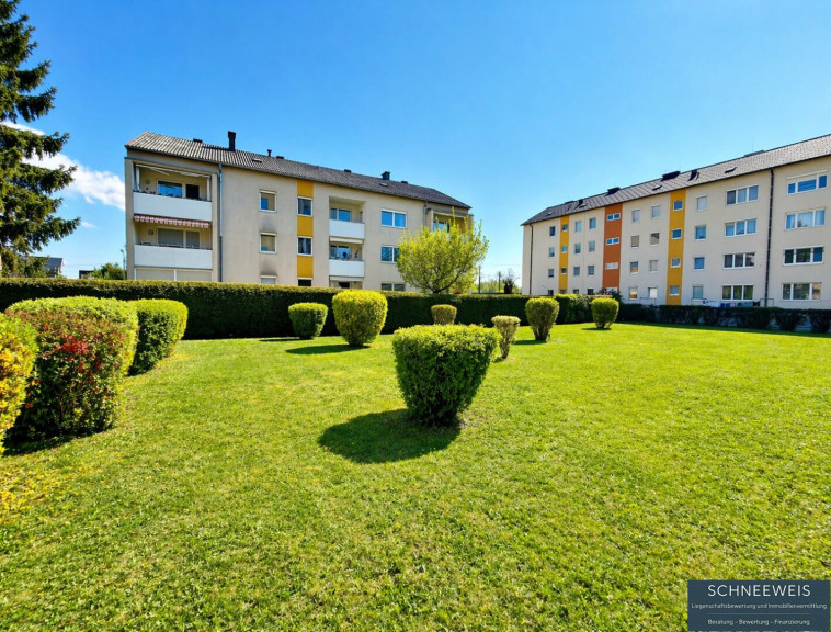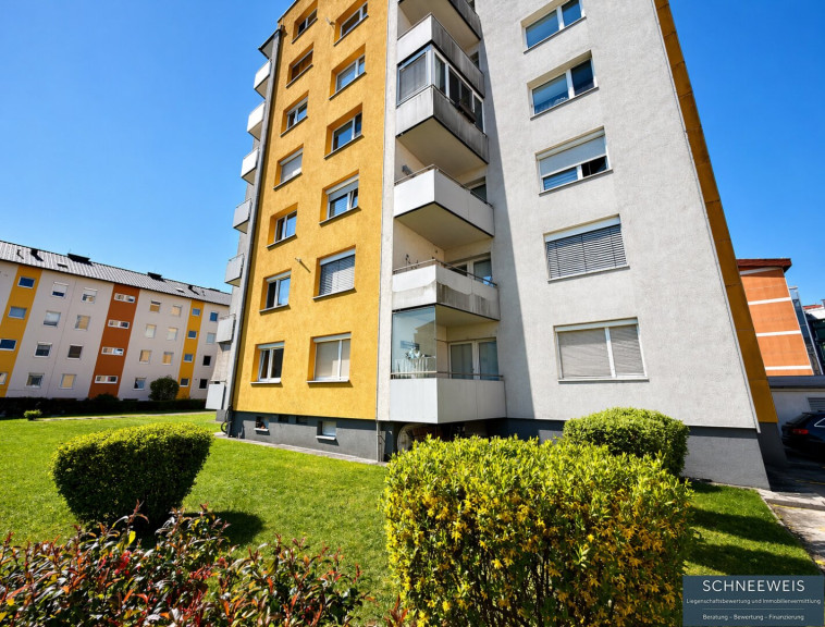Für die Sommermonate steht ein liebevoller, kleiner Balkon zur Verfügung. Ergänzend ist ein Kellerabteil der Wohnung zugeordnet. Parkplätze befinden sich direkt angrenzend bei der Liegenschaft. Der solide Bauzustand und die gepflegte Gesamtanlage unterstreichen den wertbeständigen Charakter der Liegenschaft und runden das Gesamtbild ab.