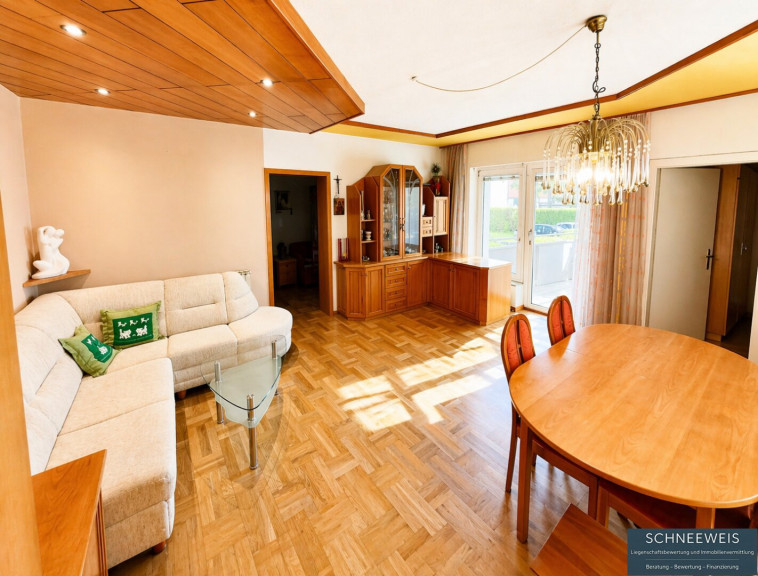 Der Wohnbereich präsentiert sich äußerst gemütlich und bietet vielfältige Möblierungsoptionen – ideal als zentraler Lebensmittelpunkt. Die Wohnung wirdgrößtenteilsmöbliert übergeben, wodurch ein rascher Start in die Nutzung bzw. eine temporäre Übergangslösung während der Modernisierung möglich ist. Insgesamt ist die Einheit jedochsanierungsbedürftigund bietet damit die Gelegenheit, Ausstattung und Oberflächen nach eigenen Vorstellungen zeitgemäß zu adaptieren. Die separate, kleine Einbauküche ist funktional geplant und verfügt über ausreichend Stauraum; ein Essplatz ist bereits im Wohnzimmer integriert. Das Badezimmer ist mit Dusche, Handtuchtrockner sowie einem Waschmaschinenanschluss ausgestattet. Zwei weitere Zimmer eignen sich flexibel als Schlaf-, Kinder-, Gäste- oder Arbeitszimmer und machen die Wohnung sowohl für Paare als auch für kleine Familien bzw. für eine Nutzung mit Homeoffice attraktiv.