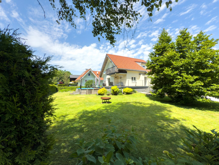 Einfamilienhaus auf großem Grundstück mit Pool und freiem Blick auf den Untersberg.