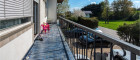 Eine sonnige Terrasse beim Eingang.