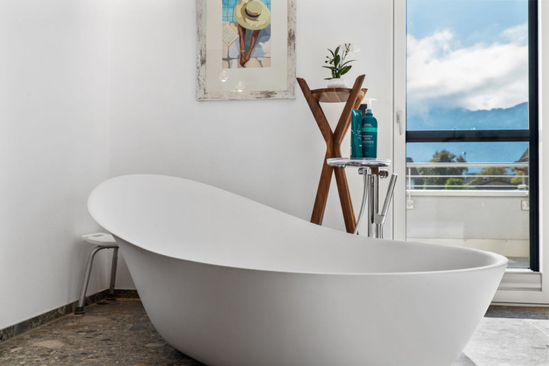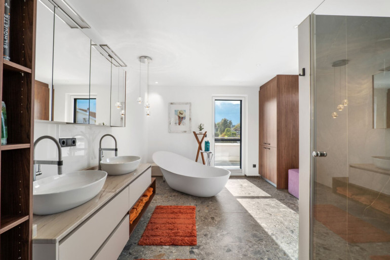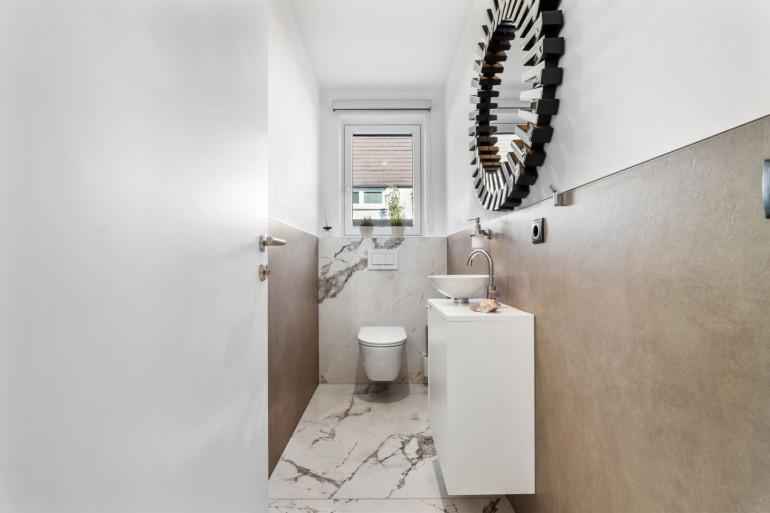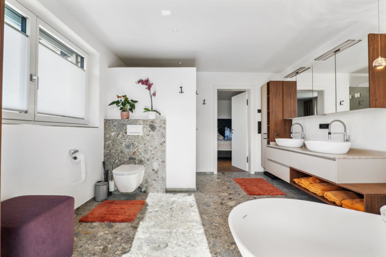 Ergänzt wird das Raumangebot durch zwei stilvoll ausgestattete Bäder sowie ein separates Gäste-WC.