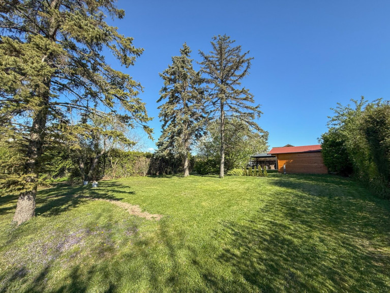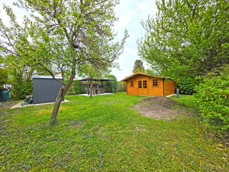 Das liebevoll gestaltete Grundstück ist vollständig eingezäunt und überzeugt durch seinen gewachsenen Bestand an Sträuchern, Nadelbäumen und Obstbäumen. Eine gepflegte Hecke sorgt für angenehme Privatsphäre – ideal zum Entspannen, Gärtnern oder für gesellige Stunden mit Familie und Freunden.