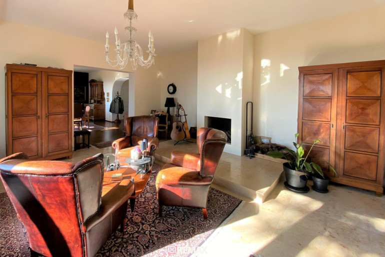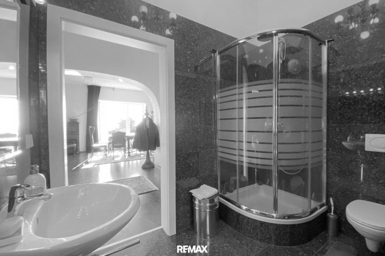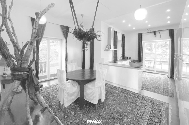 Fußbodenheizung über Erdwärme, Solaranlage, Marmorböden, Parkettböden, hochwertige Fließen in den Nassräumen, offener Kamin, Bus- System für die Elektrik, großflächige Panoramafenster, glasbruchsichere 3Scheibenverglasungen, Fitnessraum und eine Alarmanlage. Die Sicherheit des Anwesens ist aufgrund seiner Lage leicht zu gewährleisten. Eine 2. Zufahrt für Veranstaltungen ist über eine Privatstraße mit Wachdienst möglich ( Monatsmiete ca.€ 180,- für das Wegerecht)