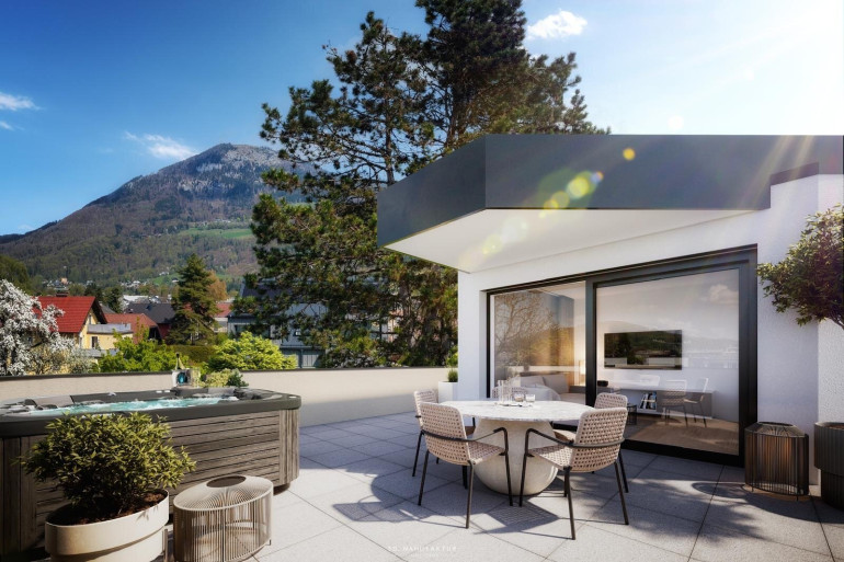 Dieses exklusive 2-Zimmer-Penthouse vereint kompakten Wohnkomfort mit außergewöhnlichem Freiraum und besonderem Flair. Auf ca. 51 m² Wohnnutzfläche entsteht ein stilvolles Zuhause über den Dächern der Stadt. Das absolute Highlight bildet die großzügige Dachterrasse mit ca. 66 m², die mit einem beeindruckenden Ausblick auf den Gaisberg begeistert und einen einzigartigen Rückzugsort im Freien schafft. Im Inneren sorgt der offen gestaltete Koch-, Wohn- und Essbereich mit rund 28 m² für ein modernes, lichtdurchflutetes Wohngefühl. Ergänzt wird das Raumangebot durch ein Schlafzimmer, ein Badezimmer sowie einen Vorraum mit Garderobe und einen praktischen Abstellraum.
