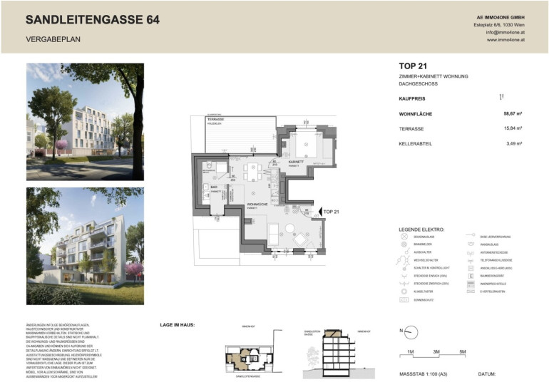 Mit der Kaufvertragserrichtung ist Mag. Bertram Eisner von der Kanzlei Eisner - Ruhdorfer Legal , Esteplatz 6/6, 1030 Wien beauftragt. Die Kosten belaufen sich auf 1,5 % des Kaufpreises zzgl. 20 % USt zzgl. Barauslagen zzgl. Beglaubigungskosten. Für die Übernahme der Treuhandschaft gegenüber der finanzierenden Bank verrechnet der Vertragserrichter zusätzlich 0,5 % des Pfandrechtsbetrages zzgl. 20 % USt.