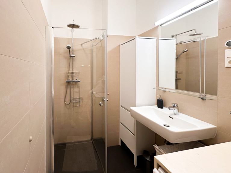 Parkett, Fliesen, Gas, Zentralheizung, Einbauküche, Personenaufzug, Südbalkon, Dusche