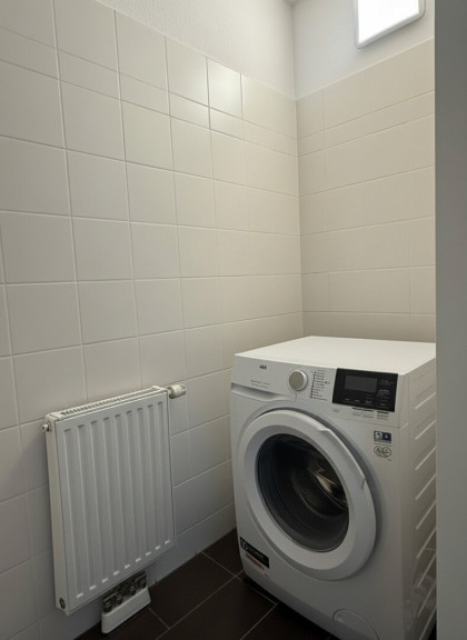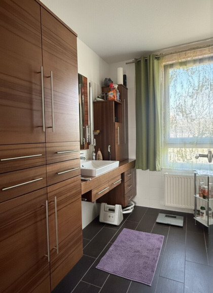 Laminatböden, Fliesenboden, Fliesenbad mit Fenster, Badewanne, extra Fliesentoilette mit Waschmaschinenanschluss.