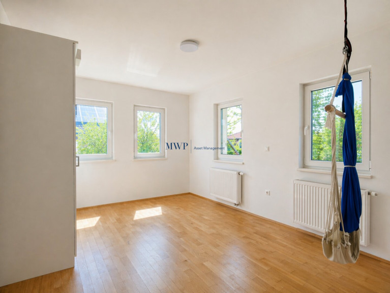 Großzügige Fensterflächen sowie die optimale Ausrichtung sorgen für ein helles und angenehmes Wohnambiente. Das Haus wird mittels Wärmepumpe über Radiatoren beheizt.