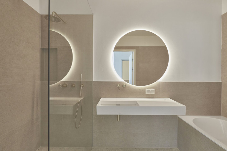 Das gesamte Badezimmer, sowie die Gäste Toilette sind Teil unserer "Gold Hour" Reihe und sind mit nobelster Ausstattung des zertifizierten italienischen Herstellers "Vallone" ausgestattet, der sich durch seine präzise Handarbeit und sein elegantes Design hervorhebt.