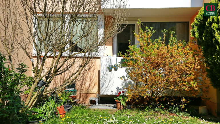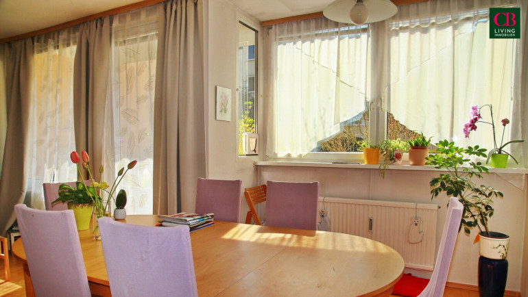Im Hochparterre gelegen, bietet sich die Möglichkeit von der gemütlichen Loggia aus über eine kleine Treppe in den schönen, parkähnlichen Allgemeingarten zu gelangen.