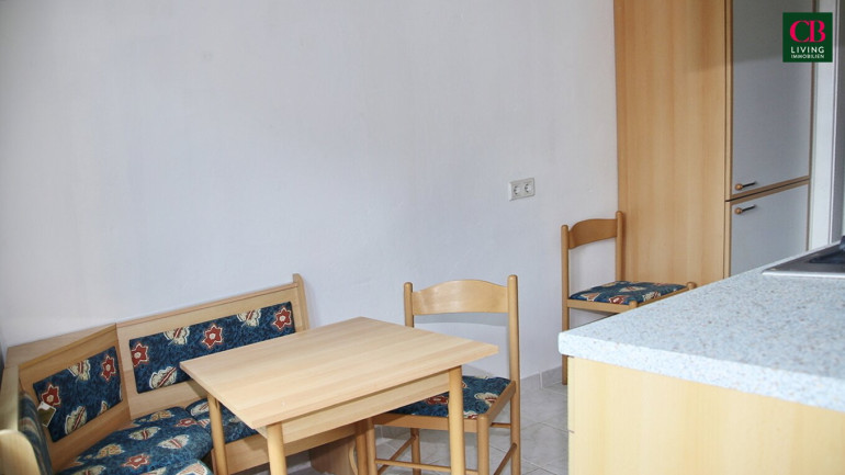 In der sonnigen Küche befindet sich ausreichend Platz für eine gemütliche Sitzecke.