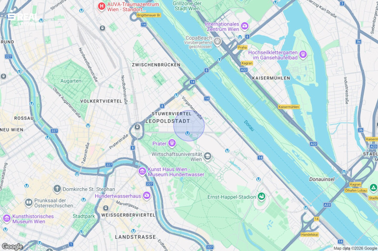 Die Wohnung befindet sich in attraktiver Lage nahe dem Prater, der Messe Wien sowie der Wirtschaftsuniversität Wien. Dank der direkt gegenüberliegenden U2 Station Messe-Prater profitieren Sie von einer hervorragenden öffentlichen Anbindung.