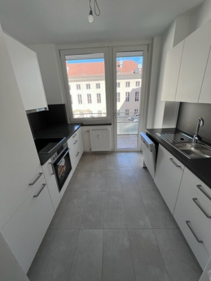 Neue Küche wurde eingebaut. Von der Küche aus gibt es einen Balkon und ein Balkon ist vom Wohnzimmer aus begehbar