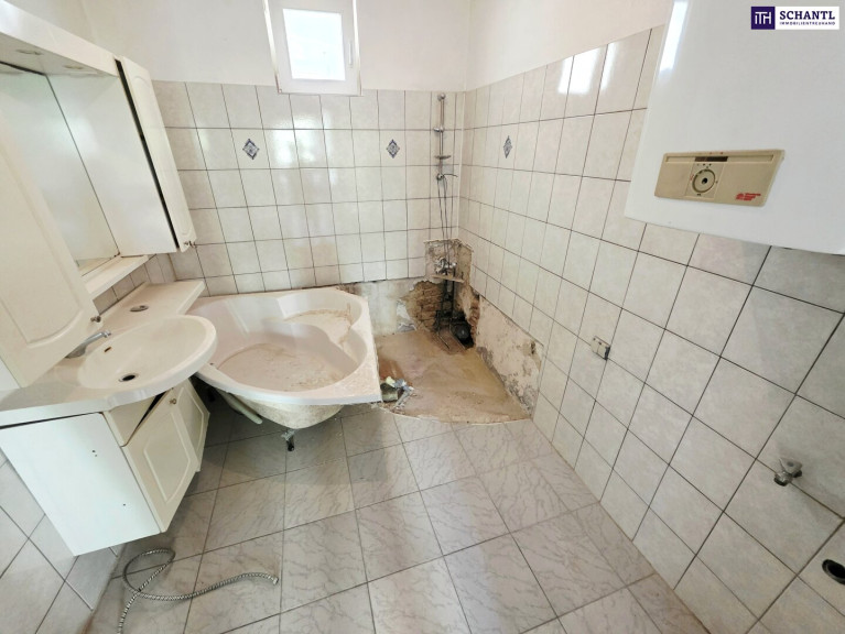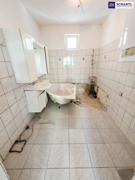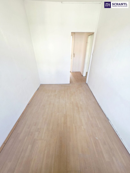 Ihre neue Wohnung hat Renovierungsbedarf und teilt sich in einen kleinen Vorraum, ein separates WC, einen geräumigen Küchenbereich mit Platz für einen kleinen Esstisch, eine kuscheliges Schlafzimmer, ein Badezimmer mit Badewanne und Waschmaschinenanschluss sowie ein großes Wohn-Esszimmer.