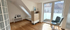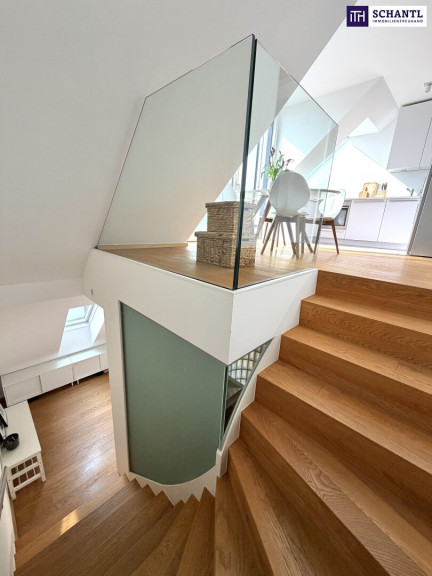 Die Ausstattung lässt keine Wünsche offen: Fußbodenheizung, Klimaanlage in allen Räumen sowie außenliegende elektrische Jalousien bei den Velux-Dachflächenfenstern sorgen für höchsten Wohnkomfort zu jeder Jahreszeit. Die Wohnung ist mit einer stilvollen Designerküche sowie hochwertigen und raffiniert integrierten Einbaumöbeln im Badezimmer, WC und Wohnzimmer ausgestattet.