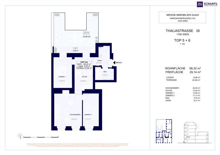 Wohnfläche 68 m2 + 23 m² Terrasse + 6 m² Loggia