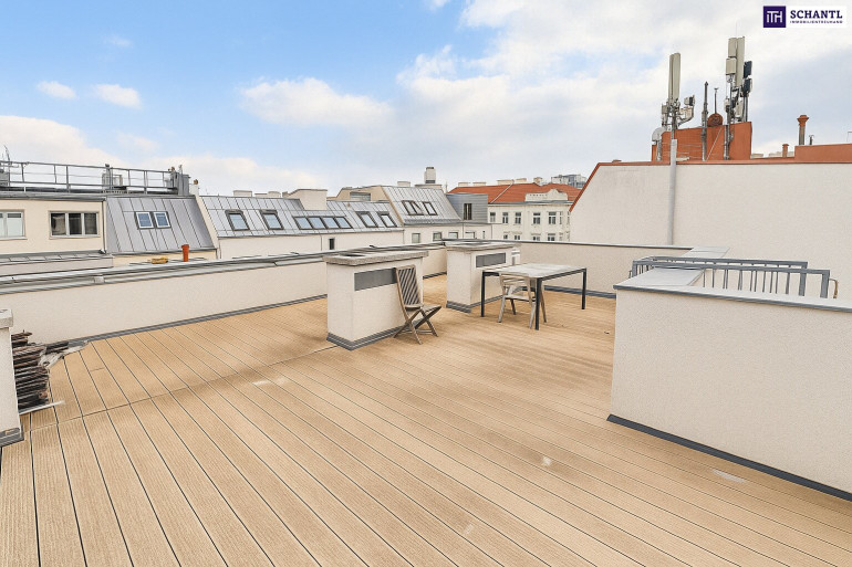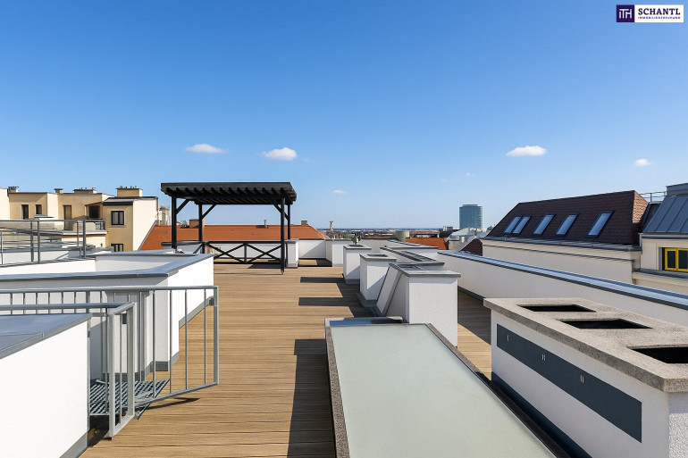 Das Highlight: Zwei weitläufige Terrassen mit insgesamt rund 69 m² – eine davon direkt an den Wohnraum angeschlossen, die zweite mit herrlichem Fernblick über Wien.