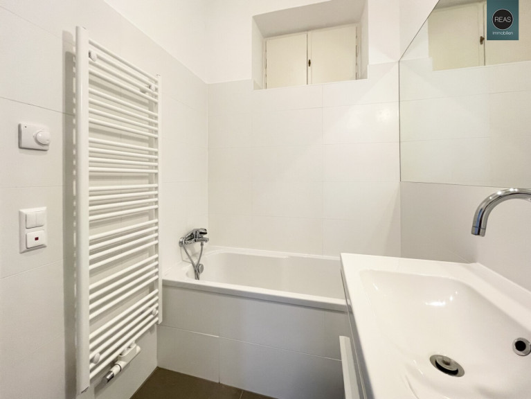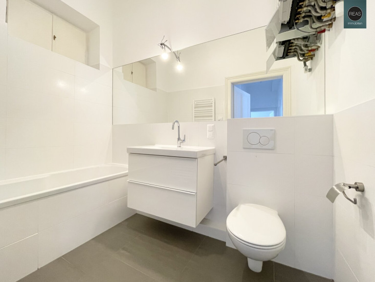 - 1 Bad inkl. Badewanne, WC Waschbecken samt Unterschrank und Spiegel, Fußbodenheizung sowie einem Handtuchheizkörper