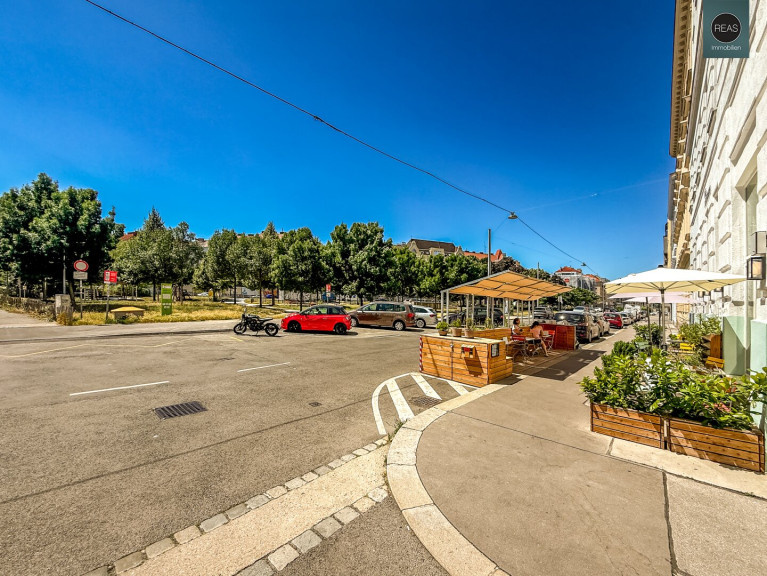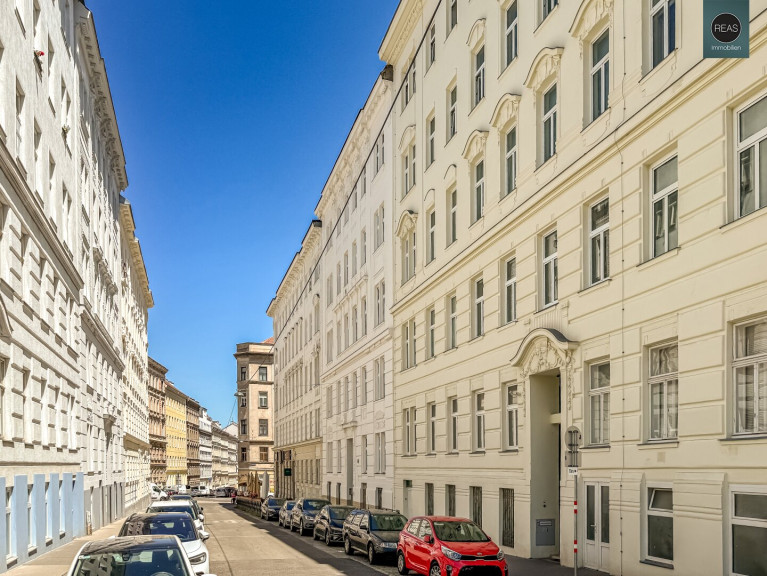 Die sehr helle Immobilie befindet sich im 3. Stock (ohne Lift) in einer ruhigen Seitenstraße. Fenster sowohl zur Straße (2 Zimmer) als auch in Richtung Hof. (1 Zimmer, Küche, Vorzimmer, WC).