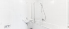 Mit Badewanne, Waschbecken und Waschmaschinenanschluss.