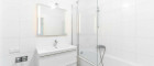 Mit Badewanne, Waschbecken und Waschmaschinenanschluss.