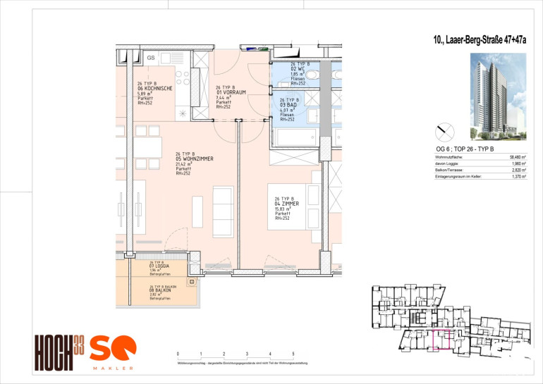 - Wohnfläche: ca. 56,50m² zzgl. Loggia mit ca.1,96m²