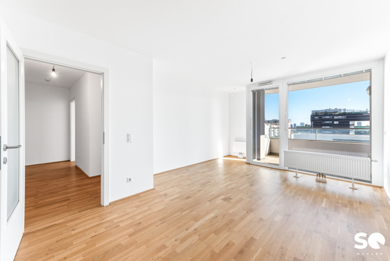 Diese lichtdurchflutete 2-Zimmer-Wohnung im 6. Obergeschoß vereint urbanes Wohnen mit einem außergewöhnlichen Lebensgefühl: Weitblick und modernes Design – mitten in Wien.