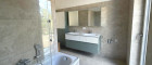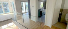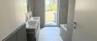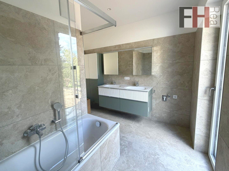 Auf dieser Ebene befindet sich außerdem ein großes Zimmer mit ca. 21,5m², das durch eine raumteilende Wand beispielsweise als Schlafzimmer mit integriertem Schrankraum oder Arbeitszimmer genützt werden kann. Ebenfalls hier gelegen sind das WC und das geschmackvoll eingerichtete Bad mit barrierefreiem Duschbereich, einer Badewanne mit hochwertiger Glasschiebewand und einem Doppelwaschbecken. Eine Terrassentür nach draußen sorgt auch hier für ausreichend Tageslicht und Frischluft.