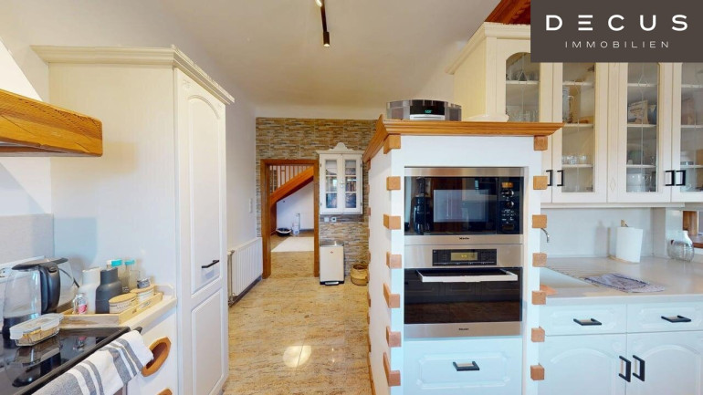 - Maßgefertigte Tischlerküche mit hochwertigen Geräten, unter anderem von Miele