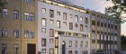 - In den Neubau harmonisch integrierte, revitalisierte Gründerzeitfassade