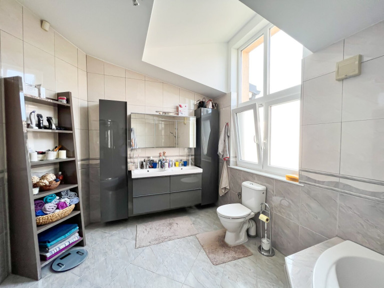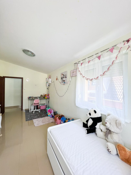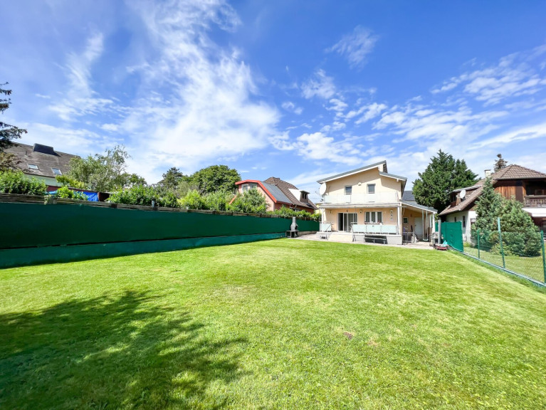 Die Haus befindet sich in einer sehr ruhigen Einfamilienhaussiedlung mit sehr guter öffentlicher Anbindung. Die Autobusstation der Linie 98 A befindet sich nur zwei Gehminuten vom Haus. Ein Supermarkt und eine Apotheke befinden sich ebenfalls in der Umgebung. Der nächstgelegene Kindergarten, die Volksschule und das Gymnasium sind nur drei Autominuten vom Haus entfernt.