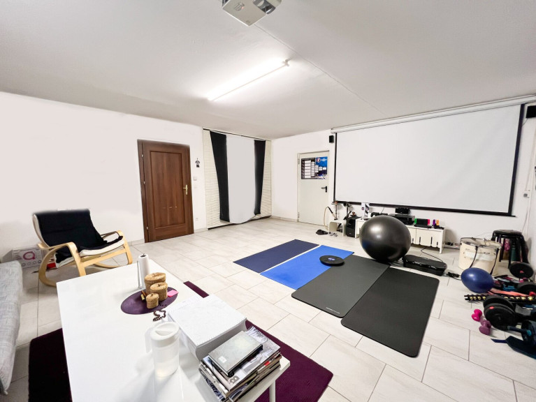 - ein 44,29 m2 großer Hobbyraum mit Zugang zum Garten