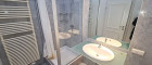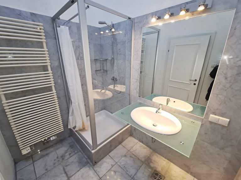+ Badezimmer mit Waschbecken und Dusche