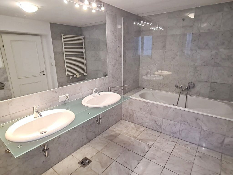 + Badezimmer mit Badewanne, Doppelwaschbecken, WC