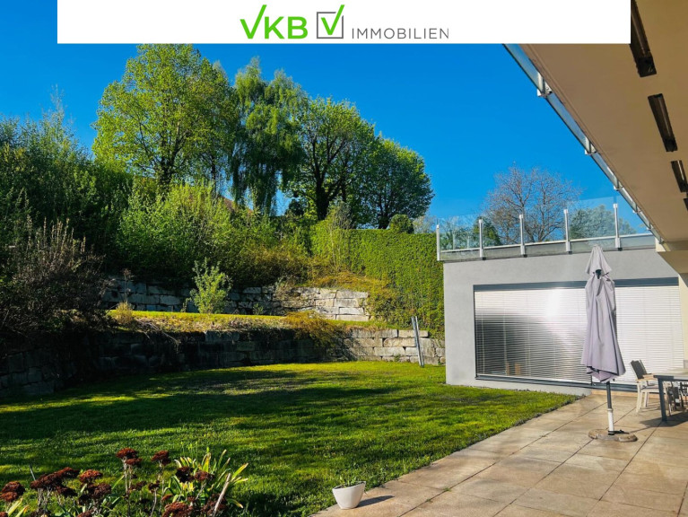 Die Gartenanlage wurde dem natürlichen Geländeverlauf angepasst und in zwei Ebenen terrassenförmig angelegt. Die Absicherung erfolgt durch stabile Betonmauern. Besonders hervorzuheben ist das vorhandene Ausbaupotenzial im Bereich oberhalb der Garage sowie im Eingangsbereich, welches zusätzlichen Wohnraum ermöglichen kann.