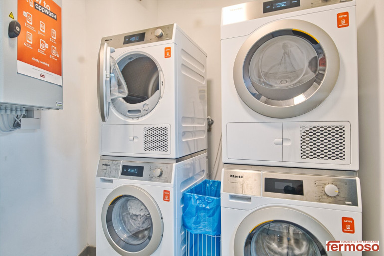 Es gibt 2 Waschräume mit insgesamt 4 Waschmaschinen (Miele) und 4 Trockner (Miele), welche Sie benützen können.