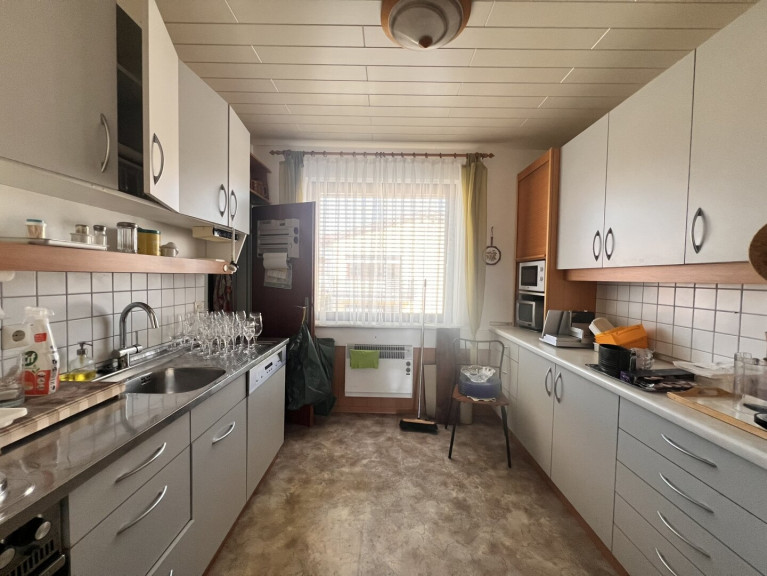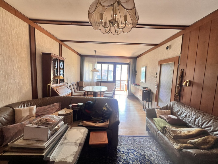 Das Herzstück der Wohnung ist der helle Wohnbereich mit Zugang zur verglasten Loggia, die zu jeder Jahreszeit zusätzlichen Wohnraum schafft – perfekt zum Entspannen, Lesen oder als gemütlicher Rückzugsort. Große Fenster sorgen für eine freundliche und lichtdurchflutete Atmosphäre in der gesamten Wohnung.