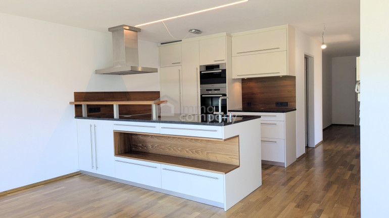 - Hochwertige Ausstattung: Die Wohnräume sind mit edlem, versiegeltem Akazienboden und einer Fußbodenheizung ausgestattet. Die moderne Küche verfügt über hochwertige Miele-Geräte, darunter ein Induktionskochfeld, ein Kühlschrank, ein Pyrolyse-Backofen, ein Dampfgarer sowie ein Geschirrspüler.