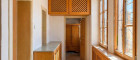 Eine der Küchen liegt im vorderen, ursprünglichen Gebäudeteil und betont den charmanten Altbaucharakter des Hauses, während sich die zweite im Zubau befindet.