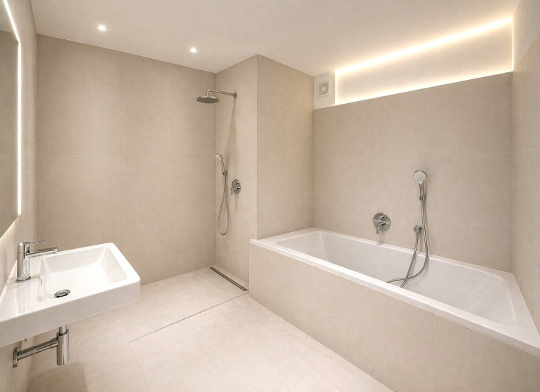 Die Wohnung umfasst einen Vorraum, einen Abstellraum, ein separates WC und ein komfortables Badezimmer mit hochwertiger Ausstattung. Die großzügige Freifläche besteht aus einer Terrasse (13,44 m2).