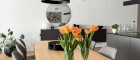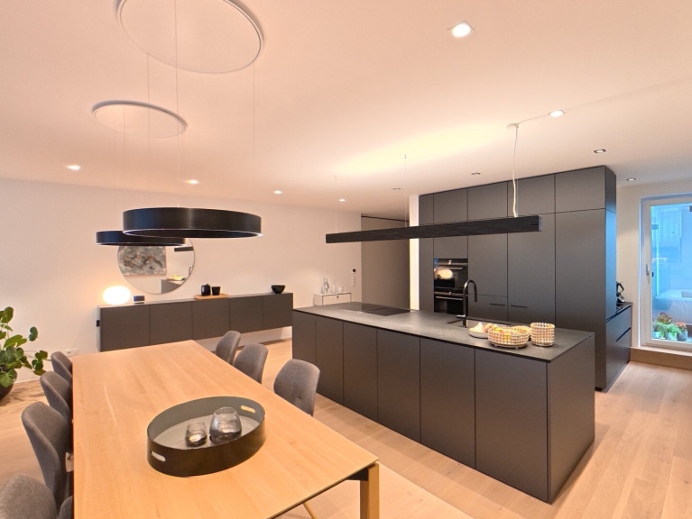 Die Wohnung besticht durch eine moderne Raumgestaltung mit Dielen und Fliesen, die eine angenehme Wohnatmosphäre schaffen. Fernwärme und Fußbodenheizung garantieren wohlige Wärme in der kalten Jahreszeit, während der gemütliche Kamin für behagliche Abende sorgt. Die offene Wohnküche lädt zum gemeinsamen Kochen und Verweilen ein und ist das Herzstück des Apartments.
