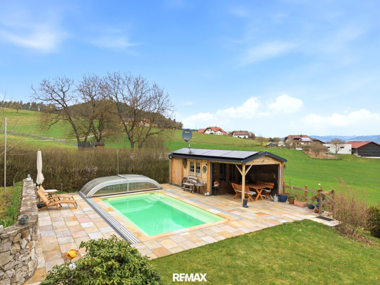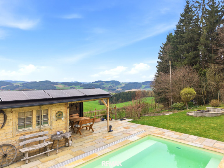 Moderne Landidylle in Hagenberg – Einfamilienhaus mit Fernblick, Pool und nahezu Alleinlage