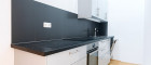 - Wohnzimmer mit vollausgestatteter Küchennische und Ausgang auf den Balkon